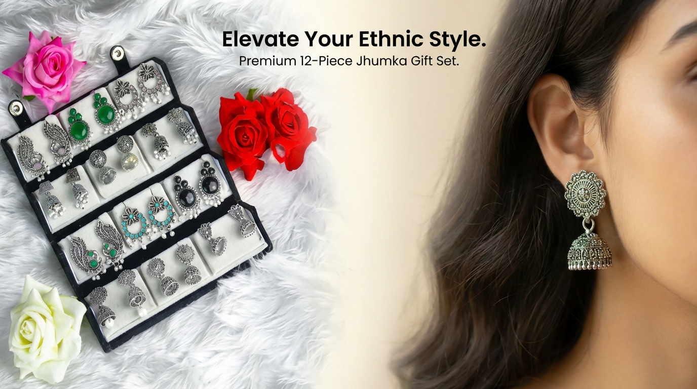 Set of 12 Random Earrings with Folding Jhumka Box | Premium Gift Box