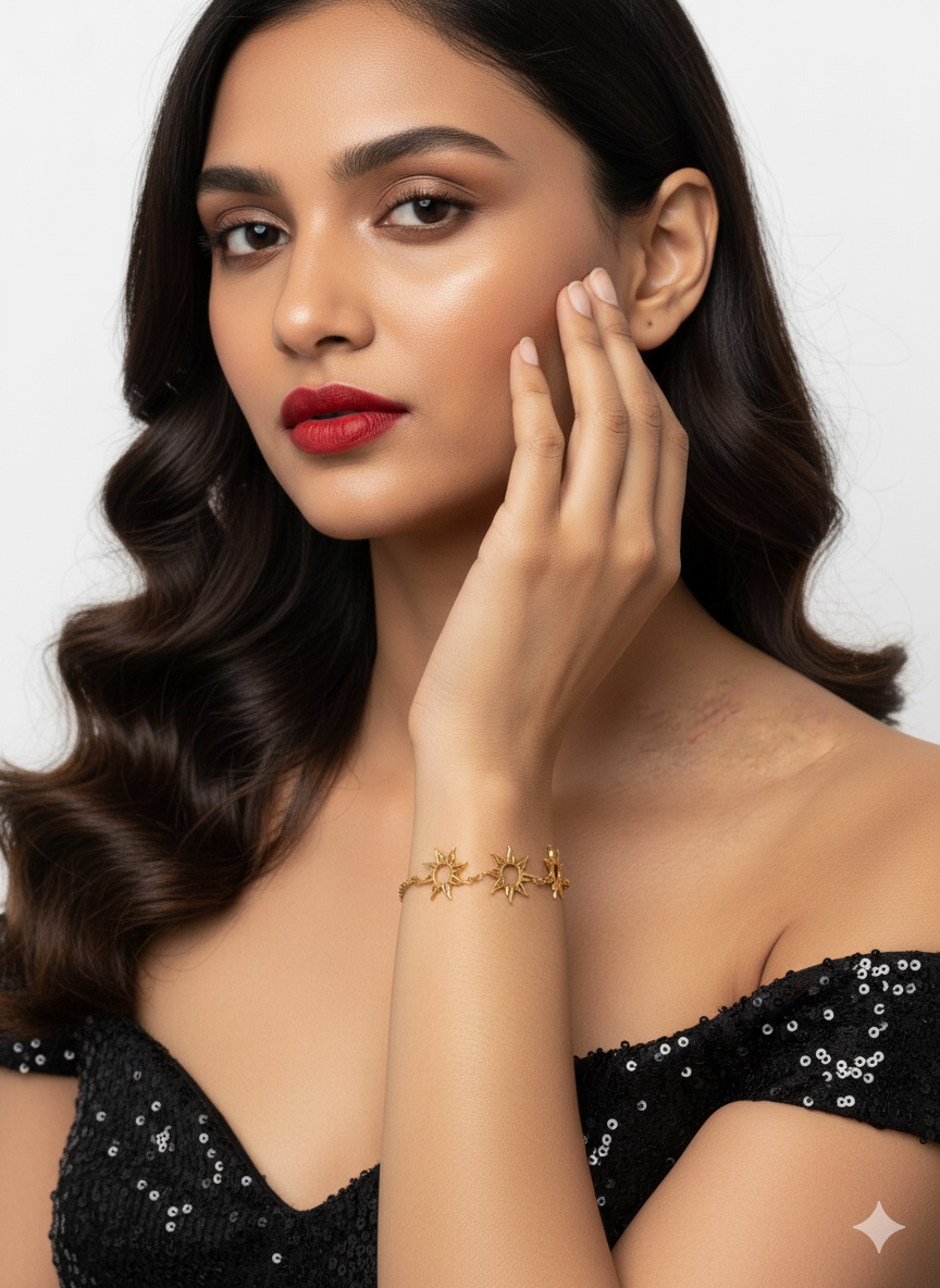 It’s the ultimate accessory to add a touch of personality to your wrist and is a top search for sun jewelry in India. Wear it on its own for a bold look, or stack it with other chains to create a curated, celestial stack that's totally out of this world.